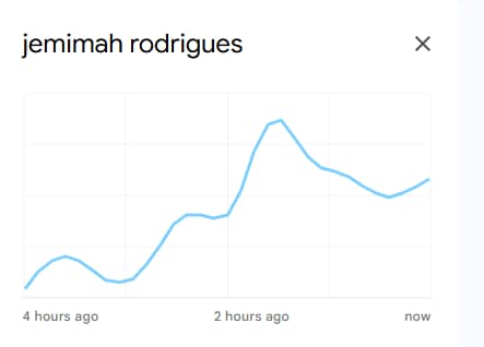 As per Google Trends, the search interest in ‘Jemimah Rodrigues’ grew over 800 per cent, with over 2000 searches in the last four hours. Here’s a graph depicting the Google Search Trend around her.