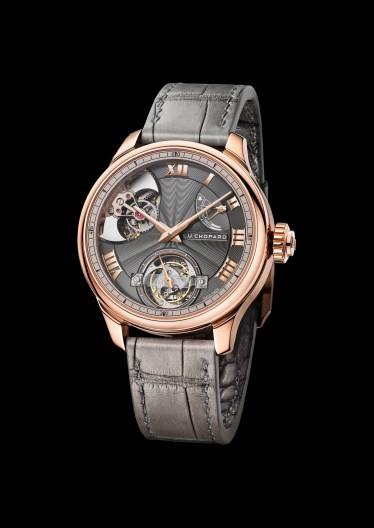 The L.U.C Haute Horlogerie collection has been enriched with a new technical prodigy, as this L.U.C Full Strike model adds a tourbillon with a sapphire bridge to the monobloc sapphire minute repeater inherent to the L.U.C Full Strike series. This 42.5 mm timepiece in ethical 18-carat rose gold is equipped with the new chronometer-certified L.U.C 08.02-L movement. The extremely accomplished level of finishing, both on the movement and the case, has earned it the Poinçon de Genève quality hallmark. Its dial, in ruthenium grey-coloured hand-guilloché rose gold, opens to reveal the two complications that make this 20-piece limited edition so sophisticated. Endorsed by virtuoso brothers Renaud and Gautier Capuçon, its acoustic richness achieves an exceptional level of quality, while perfect homogeneity makes it an unparalleled timepiece combining a stunning conceptual challenge with supremely accomplished execution.