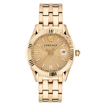 This timeless case body features a sleek dial enriched with Versace la Greca pattern and a 3d Medusa at 12h. The particular finishing of the top ring gives to this watch a glamorous look & feel enriched with Versace logo at 12h. The 41mm case is enriched with a 3 hands movement and window date with magnifying glass at 3h.
