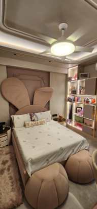 The fruits of this artistic labour have manifested in a breathtaking revelation. The bed itself is adorned with a resplendent backdrop boasting the delicate curvature of rabbit ears, while the front drop exhibits an exquisite manifestation reminiscent of the grace in rabbit’s feet. This tableau is thoughtfully harmonized with the presence of resplendent side tables, each a work of art in its own right.