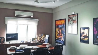 In addition to having a place for his desk and his accolades, his office is decorated with posters and artwork from some of the most well-known films, like Pulp Fiction, The Joker, and The Godfather. Also, the actor has a bizarre library. Two different Mahabharatas, Gotham comics, a copy of Tamil Pulp Fiction, and the Upanishads are among the books on this shelf.