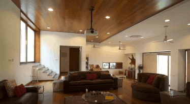 The den, as Rana calls it, is the area where he is believed to spend the most time. This enormous, two-story area is separated into various divisions. A projector is placed in front of a blank white wall, and there are comfy sofas in one corner where the family can sit and enjoy. Rana has a separate area designated for him for those occasions when he needs some privacy.