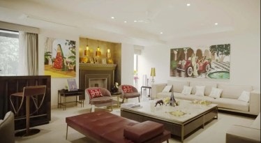 Located in South Delhi’s poshest area, Panchsheel Park, the two-storeyed mansion has been kept minimalist and shades of hues of beige make it classy. The interiors are a perfect amalgamation of luxury and art. You’ll find antiques, art pieces, and luxurious touches throughout the house.