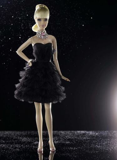 The masterpiece created by renowned Australian jeweller Stefano Canturi debuted on May 4, 2010, during Australian Fashion Week. The 11.5-inch doll is dressed in a chic pink peep-toe dress and a strapless black evening gown. The Cubism necklace, which has a rare one-carat Argyle pink emerald cut Austrlian diamond set amid three carats of Canturi’s distinctive “Cubism style” white baguette and carre cut diamonds, is the pièce de résistance of the Barbie, though.