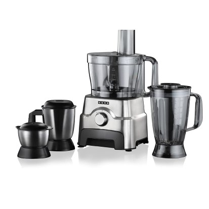 An all-in-one kitchen solution, the Usha food processor is equipped with a 1000 Watt high torque motor which is 100% copper, making food preparation faster, convenient, and pleasant. Catering to cooking enthusiasts, this latest processor comes with thirteen separate attachments that includes a bowl, blender jar, chutney jar, multi-purpose jar, citrus juicer, centrifugal juicer, shredder, grater, slicer, chopper, atta kneading blade, egg whisker, and spatula.
