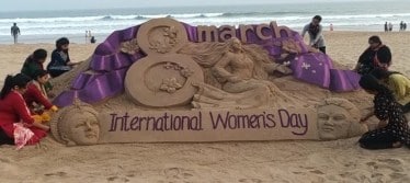Women sand artists in Puri, Odisha dedicate a sand sculpture on the occasion of #internationalwomensday2022 (ANI)