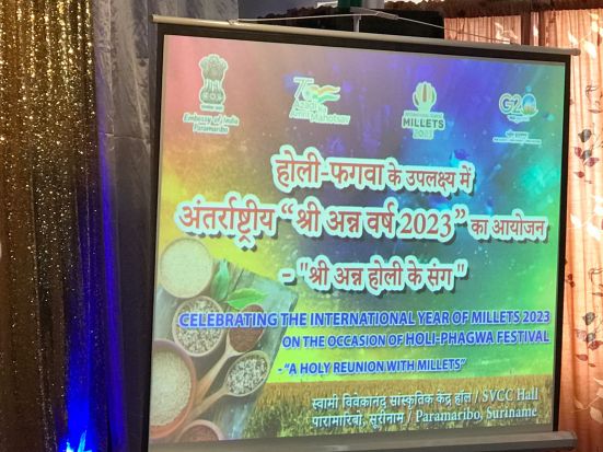 The Indian Embassy in Suriname hosted Holi at its Swami Vivekananda Cultural Centre (SVCC) in a rather unique way with an exhibition about millet, a candidly forgotten super food with wide varieties.