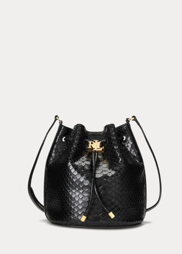 Crafted from glossy python-embossed leather, the Andie drawstring bag provides ample storage for your essentials and features an oversize “LRL” metal stopper for an iconic Lauren Ralph Lauren finish.