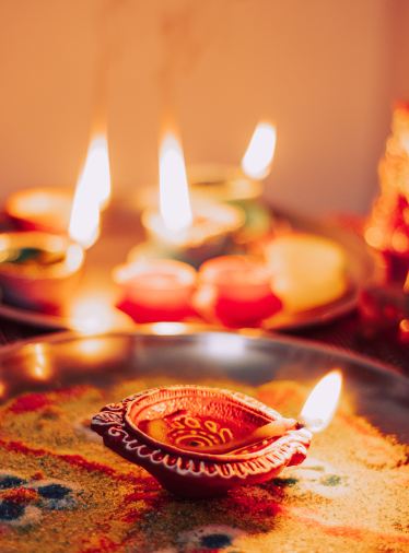 Candles and diyas play a central role in Diwali celebrations. Collect a variety of them and arrange them in creative ways. Floating candles in glass bowls or placing a group of diyas in a decorative tray can be simple yet stunning.