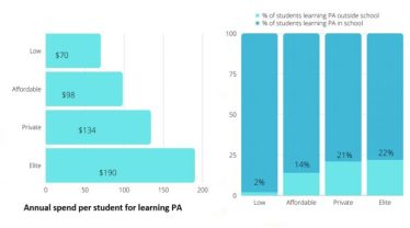 The data also showed that students from elite schools invested $190 annually on an average to learn performing arts outside school. The corresponding figures for private, affordable and low-income schools were pegged at $134, $98, and $70.