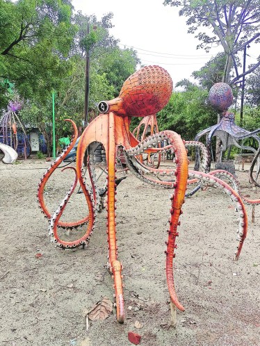 Delhi’s Shahidi Park honours freedom fighters with sculptures made from industrial chains and railway parts, such as a 20-foot-tall Bhagat Singh, built entirely from old railway tracks, engine parts and industrial chains. In Chanakyapuri, 22 sculptures made from scrap metal of animals and birds of the G20 member-countries stand in the waste-to-art park. A fierce lion made using old bicycle chains, iron rods, auto parts and pieces of rusted steel represents Great Britain, for instance.