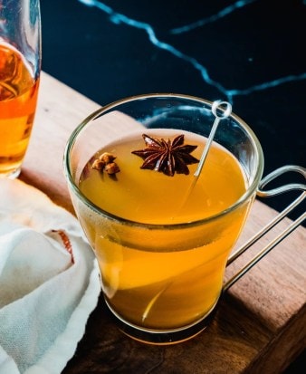 GARNISH: 1 cinnamon stick, 1 apple cut in slices