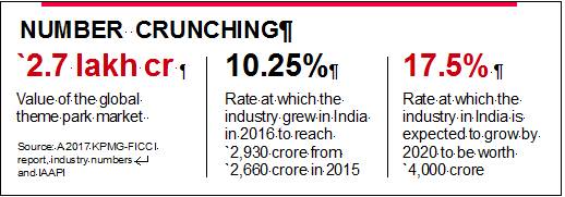 The global theme park market is currently valued at Rs 2.7 lakh crore. As per a 2017 report by FICCI and KPMG, the Indian theme park industry grew at 10.25% to reach Rs 2,930 crore in 2016, up from Rs 2,660 crore in 2015. The report, Theme Parks: Get Ready For the Ride, pegged the Indian industry at Rs 6,980 crore by 2021, growing at 19.1%. The report, however, stressed on the need for major investment to attract a global audience.