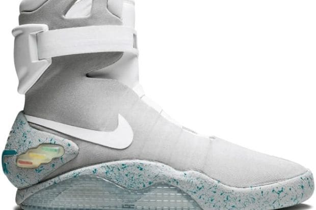 For movie buffs and sneakerheads alike, few shoes are as iconic as the Nike Air Mag — the self-lacing sneakers worn by Marty McFly in Back to the Future Part II. Nike released real-life versions of the futuristic shoes in two drops: a non-lacing edition in 2011, and a limited power-lacing edition in 2016. The proceeds benefited the Michael J. Fox Foundation, raising over $6 million for Parkinson’s research. Among the highest sales – one 2016 pair auctioned at a charity gala for $200,000.