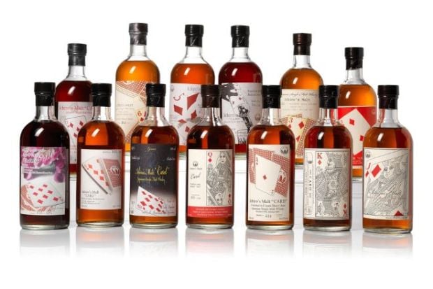 This exceptionally rare Japanese whisky collection is a true collector’s gem and a heartfelt homage to a nearly forgotten chapter of whisky history. The story begins with the Hanyu distillery, which opened its doors in 1941 but was forced to shut down in 2000. Before operations ceased, Ichiro Akuto, the founder’s grandson, managed to salvage the final 400 casks left behind. From this precious stock, he crafted the legendary Full Card Series, which is a set of 54 unique bottles, each labeled with a different playing card. Every bottle tells its own story through distinct flavour notes, ranging from delicate and fruity to bold and oaky. Only a handful of complete sets, or “full decks,” are known to exist today, making them incredibly coveted among collectors.