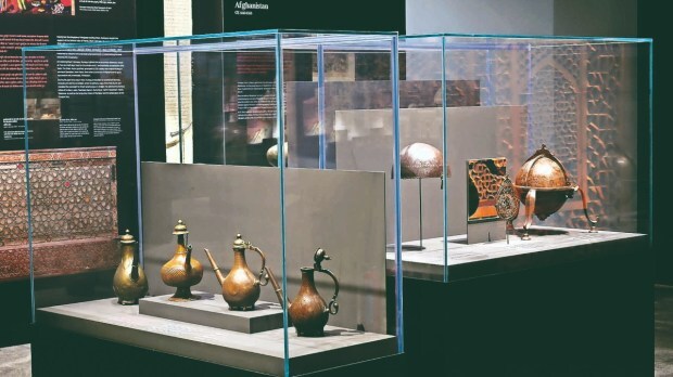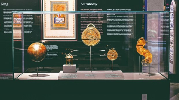 On display are Mughal miniatures, sacred texts on stone inscriptions and on paper, calligraphy, Khusrau’s manuscripts, Rahim’s portrait bowing to Lord Vishnu, Dara Shikoh’s handwritten calligraphy, a 14th-century Holy Quran, significant architectural elements from Humayun’s mausoleums and monuments, coins, astrolabes and celestial spheres, and 3-D illustrations, among others.