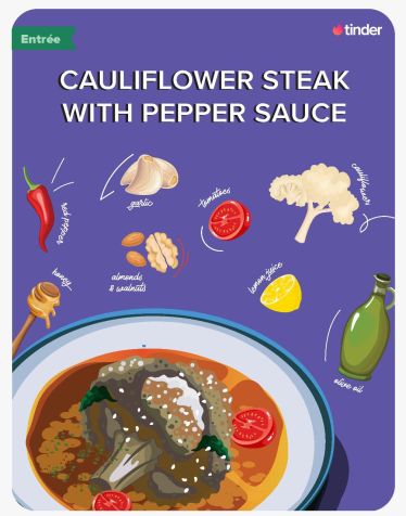 Cauliflower Steak with Pepper Sauce – Good food is often considered to be the most important ingredient for the perfect date, so let this cauliflower steak serve as a perfect ally to make the best first impression.