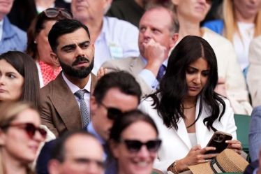 Anushka, ever the minimalist icon, chose an all-white blazer and blouse combo. Structured yet serene, her look was paired with soft waves, fresh makeup, and accents like gold hoops, a slim bracelet, and a wide-brimmed straw hat placed beside her. Her outfit whispered quiet confidence, exactly the Wimbledon aesthetic.