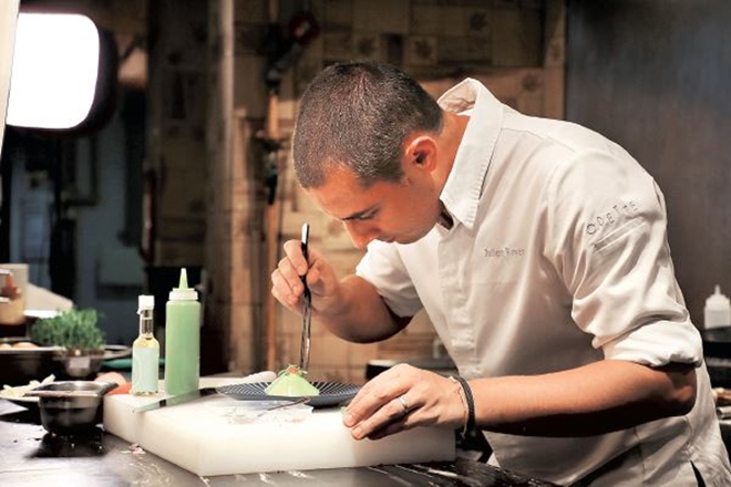 Two things strike you when you meet chef Julien Royer, running two Michelin-starred Odette in Singapore. The sheer pleasure he takes in feeding his guests, and his ability to turn a challenge into success. In the national capital for the Masters of Marriott initiative, not only does he quickly manage to dish out last-minute rounds of vegetarian appetisers on finding few takers for meat or fish, he also serves them personally, accompanied by an effusive smile. The gathering is instantly floored.