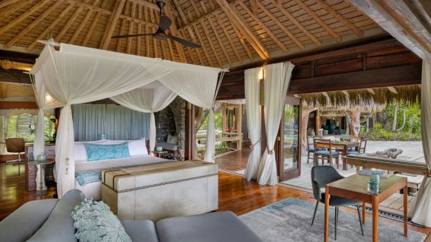 The strict limit of 11 villas ensures that the human footprint remains tiny. Ten of these ‘Presidential’ villas are tucked along the East Beach, while the 11th – the North Island villa – is perched high on the granite boulders of the northern headland.