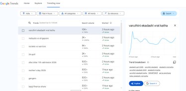 ‘Varuthini Ekadashi’ has been one of the top search queries on Google Trends on Thursday. The queries surpassed the volume of 10K within an hour. Varuthini Ekadashi, also known as Baruthani Ekadashi, is observed during the dark fortnight (Krishna Paksha) of the Vaishakha month in the North Indian calendar and of the Chaitra month in the South Indian calendar. In both traditions, it is celebrated on the same day.