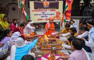 Mahant Divyagiri of Mankameshwar temple performs a special 'Havan' ahead of the launch of ISRO's PSLV-C57 carrying the 'Aditya-L1' spacecraft, Friday, Sept. 1, 2023. (Image: PTI Photo)