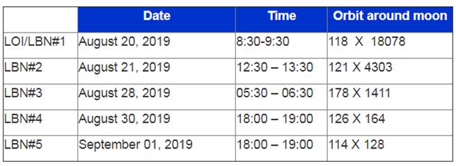 The spacecraft will go through four orbital maneuvers in the lunar orbit. This will make the spacecraft enter into its final lunar orbit passing over the poles of the Moon at a distance of 100 km from the Moon’s surface.