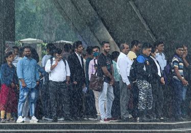 Commuters take shelter at Mandi House metro station amid rainfall, in New Delhi, Thursday, Sept. 22, 2022. (PTI Photo/Atul Yadav)
