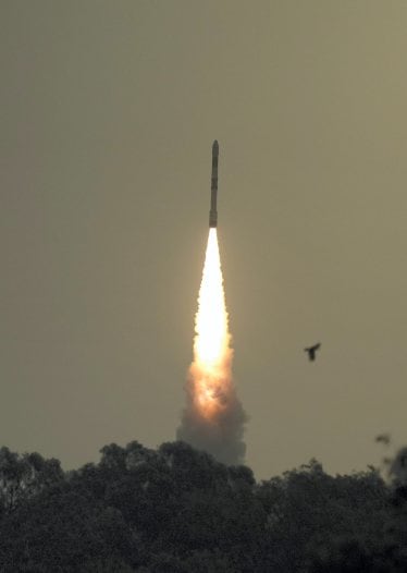 ISRO successfully launched its proven PSLV rocket carrying seven Singaporean satellites from Satish Dhawan Space Centre here and placed them into intended orbits, at Sriharikota, Sunday, July 30, 2023. (Image: PTI)