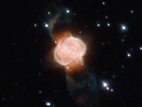 The next image seems to be of a giant man spitting out a fireball from his mouth, and does that fit in well with our Halloween theme! However, it actually is a bipolar planetary nebula that Hubble spotted in the constellation of Scutum (the Shield). At the centre is a star (so a ball of fire nonetheless!), and it is emitting material from its outer layers in large quantities, causing the cloud of gas and dust to form the spectacular nebula.