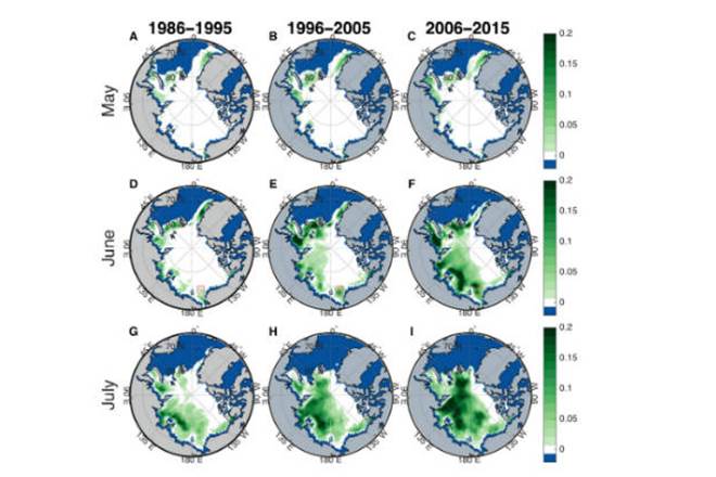 In the March-April phase, the plankton are growing steadily, with their abundance in the water continuing to increase or accumulate toward the maximum of the bloom between May and July.