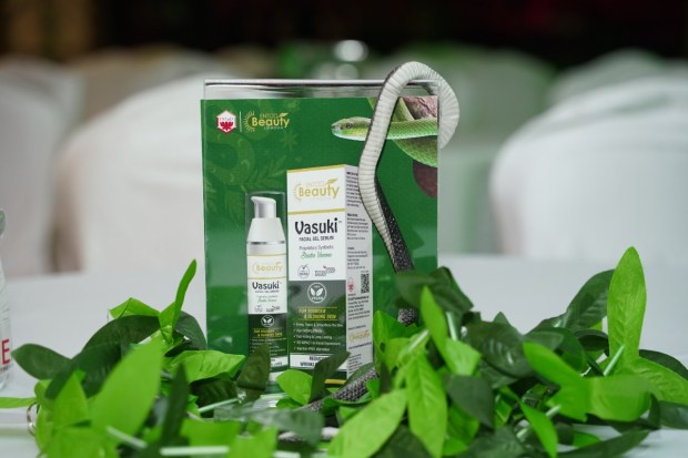 “Based on a patented anti-aging synthetic tripeptide snake venom neurotoxin developed by the Swedish company, Pentapharm Ltd. this nanotechnology-based facial gel serum is a winner of the Swiss Technology Awards. VASUKI gently relaxes muscle contractions under the skin, and is effective in preventing and reducing both dynamic and static lines in early aging skin around the forehead, eyes, neck, hands and lips,” the company said in a statement on Thursday.