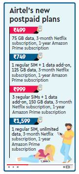 Netflix and Amazon Prime subscriptions will come with all the four Airtel postpaid plans.