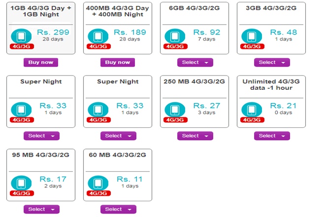 Rs 52 pack: The pack offers 1.05GB of data valid for 7 days. The pack offers 0.15GB of high speed data per day following which speed reduces to 64/kbps. It has also 70 smses to offer with unlimited voice calling.