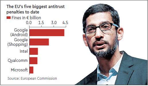 The penalty — the same amount the Netherlands contributes to the EU budget every year — is far higher than any other dished out by the US, Chinese or other antitrust authorities. More significantly, Google was given 90 days to stop what the EU said were “illegal practices” on contracts with handset manufacturers that push Google services in front of users.