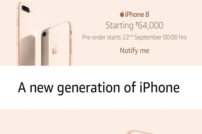1. iPhone 8 and iPhone Plus will hit the Indian market on September 29. The smartphones will be available on all the major e-commerce sites, leading phone dealers and Apple authorized resellers. Interestingly, to have a head start users can pre-book iPhone 8 and iPhone 8 Plus on Amazon India. The notification is on the official website, but the pre-bookings are yet to start. These will start on September 22.