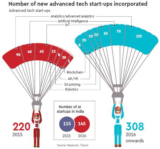 Artificial intelligence (AI) has become the dominant theme in the technology world today, engaging the attention of every enterprise as it is set to become a disrupter for all industries. It is not only the technology companies which are developing new platforms based on AI but also the start-up community which is throwing up innovative solutions. In India, the trend is no different with many of the large technology services companies coming out with their own AI platforms even as a growing number of start-ups are focused on this technology. ‘The Indian Start-up Ecosystem – Traversing the maturity cycle’, a report jointly prepared by Nasscom and Zinnov, highlighted the key trend on the AI focused start-ups in India. According to the report, AI focused start-ups are the fastest growing at 75%, cutting across verticals such as fintech and health-tech. The Nasscom-Zinnov report also states that 33% of funding in the fin-tech segment of start-ups is going towards advanced technologies such as AI & advanced analytics.
