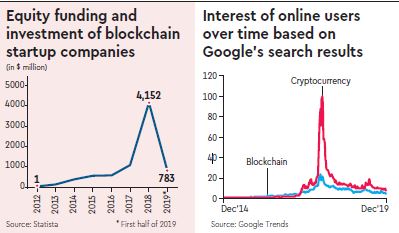 Blockchain did evince investor interest till 2018. Funding tripled from 2017 to $4.1 billion—the biggest jump since 2014 when start-ups garnered $357 million as compared to $97 million in the previous year—but this withered away in 2019. In the first half of the year, blockchain start-ups could only attract $783 million worth of funding, with investments slowing there is little hope it shall surpass the $4.1 billion figure.