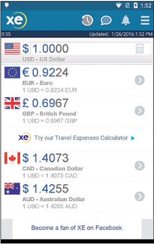 XE Currency: XE Currency is available on both Android and Apple devices. The free version of XE Currency provides live exchange rates and historical charts. Plus, it stores the last updated rates so it even works when the Internet doesn’t. You can set rate alerts to monitor specific currencies and if the free version annoys you with constant pop-up ads, you can upgrade to XE Currency Pro for just $1.99 and get an ad-free experience.