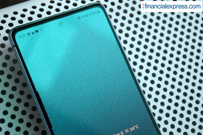 If one was to talk about the differences between the S20 FE and other S20 phones, the biggest difference comes by way of the display. At 6.5-inch, it slots between the S20 and S20+. It is 1080p+ and it is flat. It has significantly more bezels too. Curiously, the punch hole cut-out on this one also has a silver accent which is a little difficult to ignore. There is Corning Gorilla Glass 3 for protection and an optical in-display fingerprint scanner for biometrics. This is surely faster than Samsung’s ultrasonic solution found in the other S20 and Note phones, but again, it is not as fast as competing phones like the OnePlus 8 Pro using similar technology.