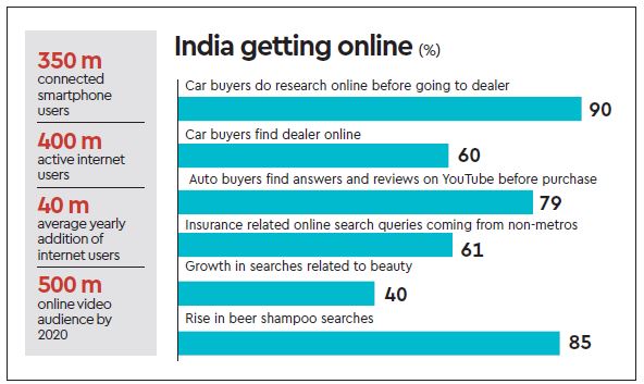 Another striking feature of the report is about growth in video consumption. Users across the country are gathering information and making purchasing decisions through online videos, and online video audience in India is expected to grow to 500 million by 2020.