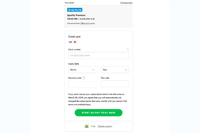 Spotify has been desperately waiting to enter India the anticipation for which spiked after the Swedish company inked a deal with T-Series, the biggest music label in India. The company is already talking to the international music labels for streaming rights in India, but one of them startled Spotify by suing it for the possible violation of copyright law. But Spotify seems undeterred for its Indian debut journey and we may be seeing the very first instance of it. Spotify website now shows the pricing of its music subscription in India, although it has not officially launched. The Spotify Premium will charge the subscribers Rs 119 per month, which is just Re 1 cheaper than what Apple Music membership costs in India.