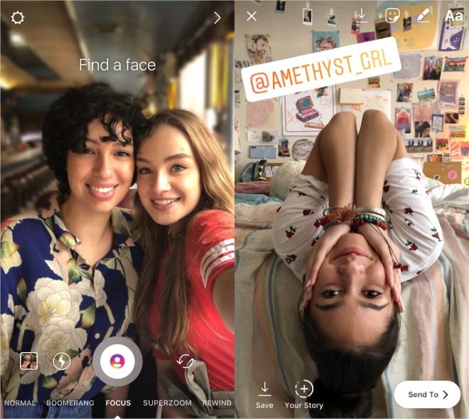The new Focus feature can be found next to Superzoom option in the record button. When you enter the Focus mode, the subject in the shot comes into focus while the background gets blurred softly. After the shot is taken, you can also apply filters and stickers before posting it. The photo can be posted as a Direct message or an Instagram Story.