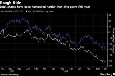 Intel is facing a steep decline in demand for PC processors, its main business, and has struggled to win back market share lost to rivals like Advanced Micro Devices Inc. In July, the company warned that 2022 sales would be about $11 billion lower than it previously expected. Analysts are predicting a third-quarter revenue drop of roughly 15%. And Intel’s once-enviable margins have shriveled: They’re about 15 percentage points narrower than historical numbers of around 60%.