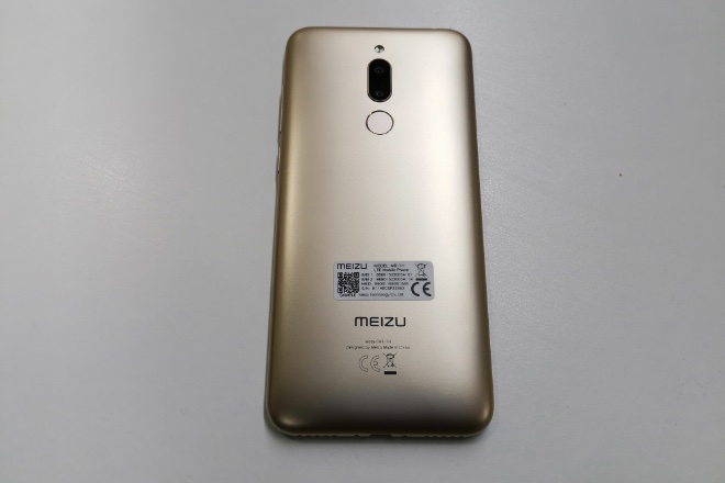 The Meizu M6T is a budget phone, which means there won’t be expensive build material. However, the handset manages to entice us with the plastic material used in the body. It has got a smooth and glossy finish, which is just good considering the price. We got the gold colour variant of the Meizu 6T – however, it inclines somewhat towards rosy tint. The rear surface of the smartphone has the branding that mentions the device is “Made in China”. On the upper part, the smartphone bears the dual camera island – above it is the LED flash and below is the circular fingerprint sensor cavity.