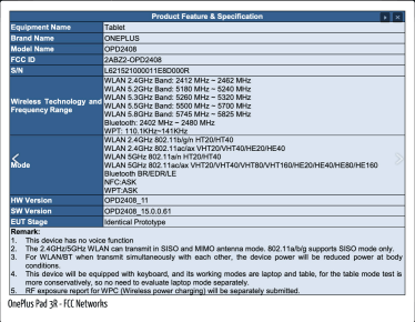 OnePlus Pad 3R listing at FCC (Image: Droid life)