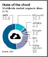 Amazon’s cloud arm is the market leader with 51.8% share in cloud infrastructure market globally, followed by Microsoft at 13.3% and Alibaba at a distant 4.6%. Andy Jassy, CEO, AWS, said, “We registered $27 billion in revenue and 46% growth (year-on-year) globally but I would say we are still in the early days—even in the US market that took the lead in cloud adoption.”