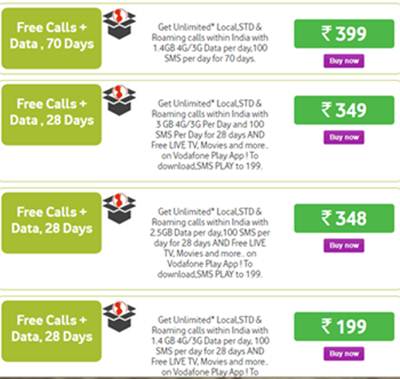 Rs 399 pack: With validity of 70 days, this plan offers 1.4GB data per day. Unlimited local, STD and roaming voice call benefits with 100 SMSes per day is also offered in this pack.