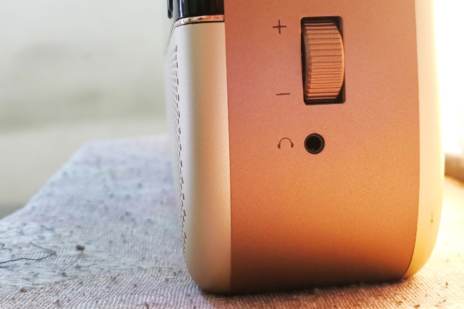 The Saregama Carvaan Gold has a metallic body that has been emblazoned with a gold finish. It feels sturdy and solid. There is a handle for portability, which complements the design. We liked how the jukebox goes with the decor of any room, be it your bedroom or drawing room.