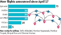 Since the grounding of operations by Jet on April 17, Indian carriers have announced close to 200 new flights in the domestic sector. Jet operated over 600 daily flights during this period last year.